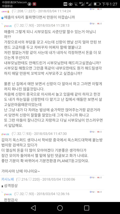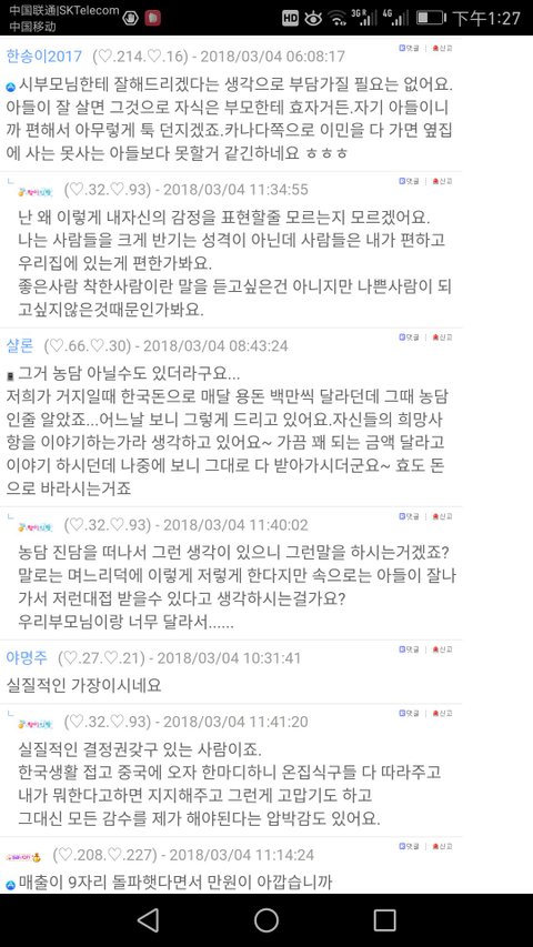 혹시 고향 사이트에 글을 지울수도 있어서 댓글들을 캡쳐해서 여기 첨부했어요.