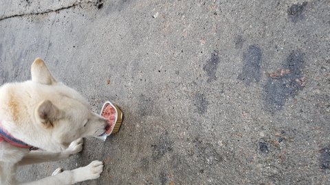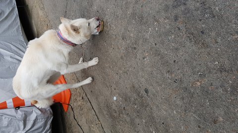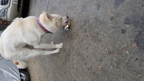 목줄도있고..덩치는큰데 엄청 말랐고 새끼같아요제가느끼기에는..사료를먹을줄모르는듯도하고
