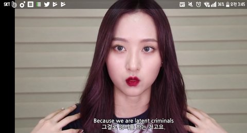우리가 남자한테 당한 일들 판에 글 올라오면 남자들이 모든 남자가 그런건 아님 이라던가 모든 남자가 그런게 아니니까 오해하지마셈 이런식으로 댓달잖아 근데 에바님이 영상 도중에 '어린 시절에 단 한 번이라도 개한테 물렸던 사람이 커서 길에 지나가는 조그만 강아지를 보더라도 피하게 되는건 당연한거 아닌가요. 일단 움츠러 들게 되는거죠. 그러한 기억 때문에. 그런 일을 겪었던 경험 때문에. 그 개가 크든 작든 순하든 순하지 않든 귀엽든 예쁘든 상관이 없어요. 그냥 개 라는 자체를 보고 일단 움츠러들게 되는 거에요. 그 사람을 보고 "야, 모든 개가 사람을 무는건 아냐! 너는 왜 사람 안 무는 개한테도 그런식으로 사람을 물거라고 생각해서 이상하게 만드냐?" 이렇게 말하는거랑 똑같다는거죠." 이렇게 말씀하셨어! 진짜 맞는말이어서 내가 다 속이 뻥 뚫리더라 밑에 사진은 내가 ㄹㅇ 레전드라고 생각하는 에바님 말 캡쳐한건데 밤길 가다보면 뒤에 사람이 있을 수가 있잖아 근데 그 사람이 남자여서 우리가 무서워한다거나 잠재적 범죄자 취급을 한다거나 그런거에 억울하다는 사람들에 대한 에바님 반박? 이야 아 그리고 영상이 짧은 편이 아니야 시간이 없거나 잠재적 범죄자 그 얘기 부분부터 볼 애들은 29분 24초로 넘겨줘 그 강아지 무는 비유 그 얘기는 28분 50초쯤부터 보면 돼! 강아지 무는 얘기 그거 좀 더 자세하게 보고싶은 애들은 27분 44초부터 보면 될거야!!