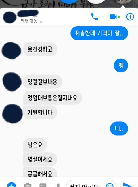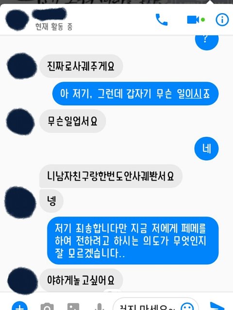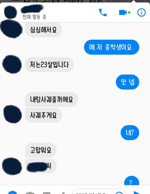 처음에는 내가 기억 못하는 조금 이상한 새학기 친군줄 알고 받아줬는데 중간부터 조카 이상한 말 해 어떡하지 제발 도와줘