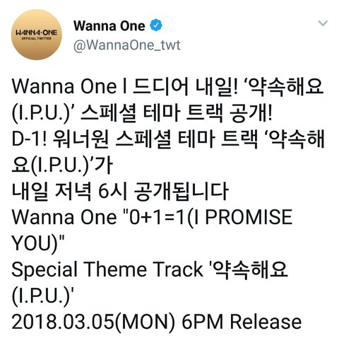 https://twitter.com/WannaOne_twt/status/970297875363065856?s=19 https://www.instagram.com/p/Bf52W9bFvTp/https://m.facebook.com/story.php?story_fbid=554855341538709&substory_index=0&id=431216073902637