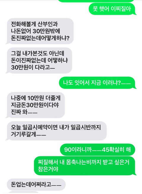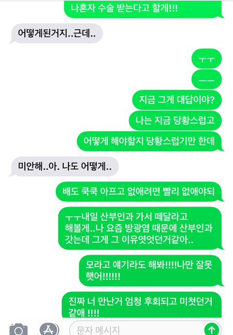 그러면서 30이상은 못 주겟단 식이더군요 제가 이런 찌질한 놈을 만나 임신을 한 것도 서러운데 딱히 말할 곳도 없어서 이렇게 글 써요..그 놈이랑 문자한거 몇개 올릴게요..제 답답한 마음을 이해하실지 모르지만 오늘 애 없애러 가는데 너무 답답하고 화가 나서 올려봅니다