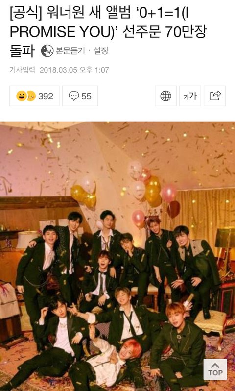 새 앨범 ‘0+1=1’ 선주문 70만장 돌파