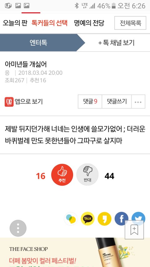 오늘 판에 어그로가 아미인척 얼굴 영업하는