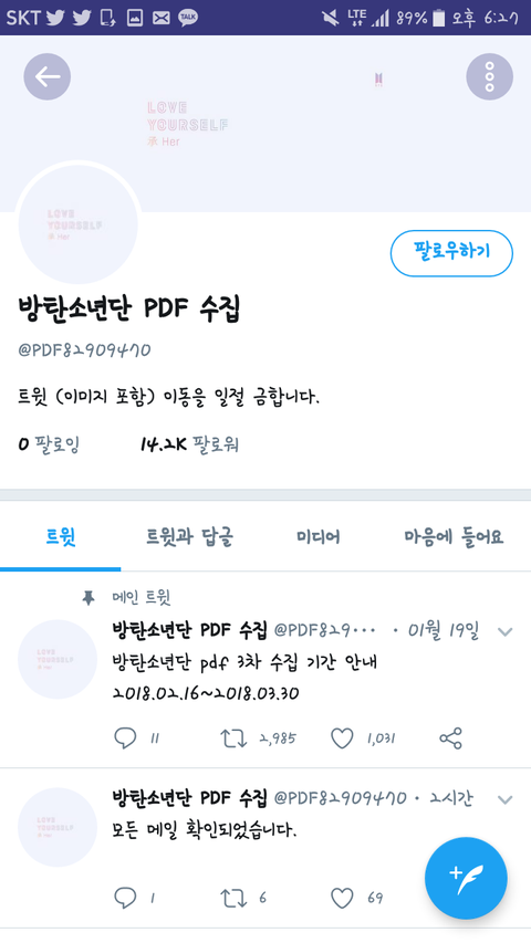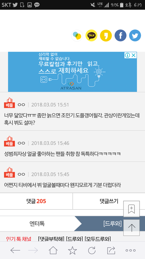 지금 방탄소년단 pdf 수집 3차 기간이라고 합니다. 만약 방탄소년단 관련 악성 게시글,악성 댓글,혹은 허위 사실 유포 등은 pdf 따셔서 이 분께 보내 드리면 될 것 같아요~ 현재 톡선에 오른 뷔의 악성 게시글은 너무 심한 것 같네요..