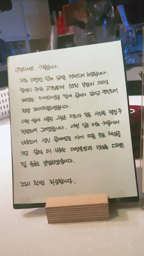 6 카이 누나네 카페의 피드백 사과문이 올라왔는데 알고보니 그 카페직원 또는 누나분이 웹에서 커피잔 든 고양이 그림을 봄. 비슷한 그림이 많아서 프리소스인줄 알고 디자인 확정하고 카이에게 이대로 그려달라고 부탁