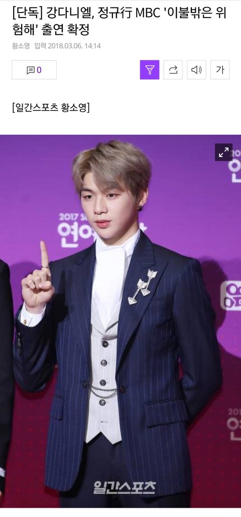 강다니엘, 정규行 '이불밖은 위험해' 출연 확정