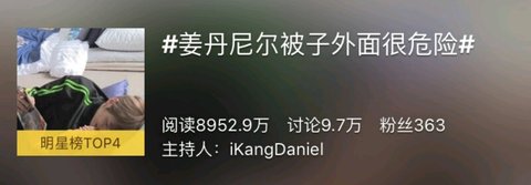 강다니엘 웨이보스타 화제 4위 #강다니엘 이불 빢은 위혐해# 중랑둥❤더 많이 유입되면 좋겠오 희희희