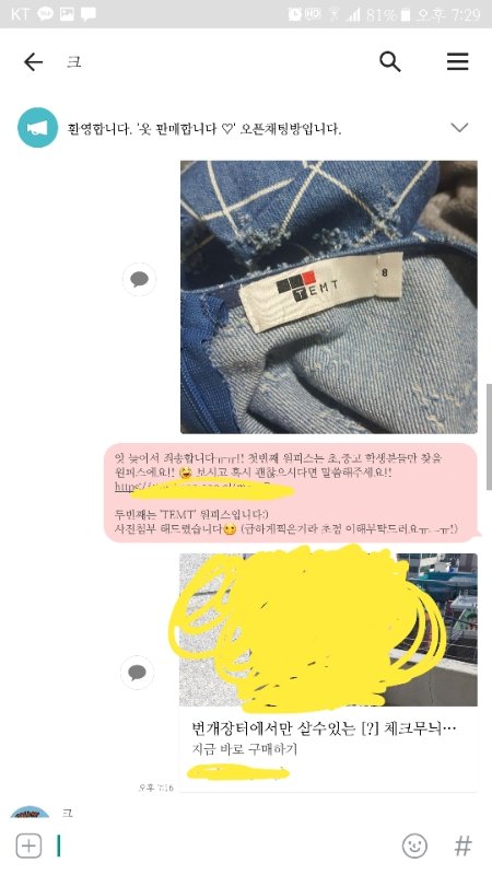 내가 아까 옷 파려고 번장에도 글 올리고 카톡 옾챗만들어놨었는데 이상한 사람 만났다 하