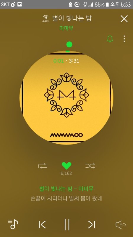 마마무노래는 기타리프 8번 반복후 클랩이 나오지만