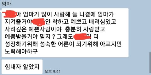 그렇게 펑펑 울고나서 집에 왔는데 엄마한테 저런 카톡이 왔어