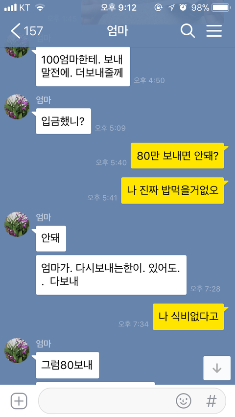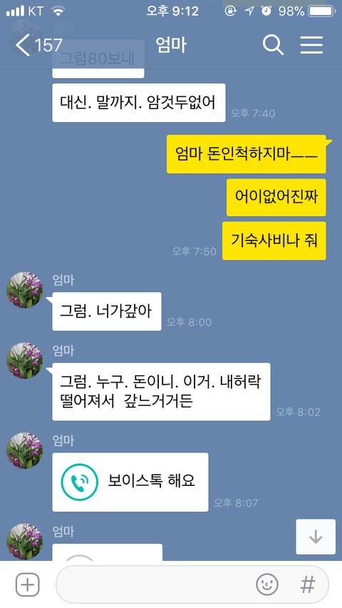 아빠한테 미세먼지 조심하라고 톡보냈는데