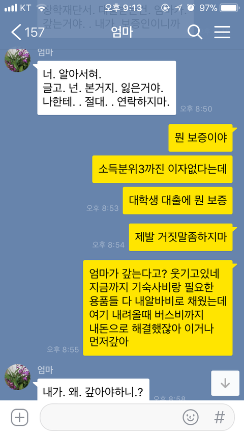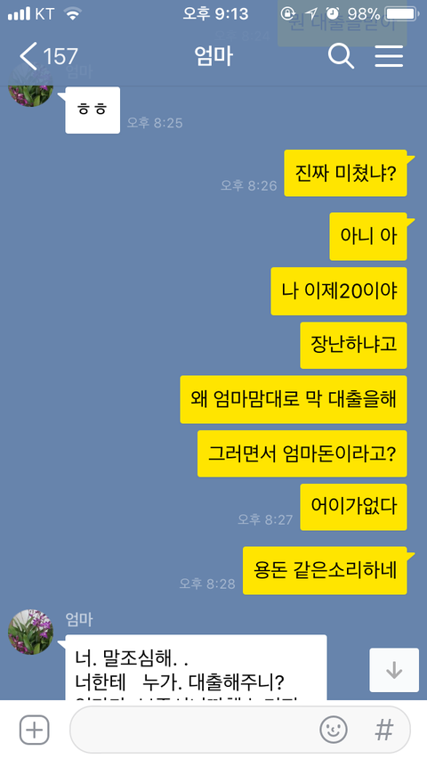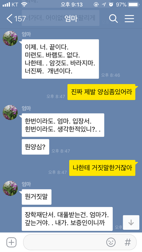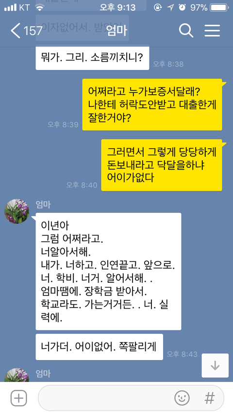 엄마가 남미새네 너는 애정결핍이고..엄마는 남편도 있고 아직 고1인 남동생도 있으니 너는 버린거야 넌 남자와 결혼후에 가버릴테지만 엄..