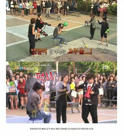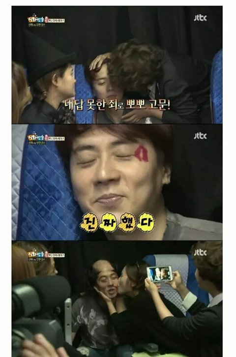 그리고 저 버스에서 노란 끈으로 손과 발이 묶인 채로 사진 보면 알겠지만 중요 부위도 강조 되게 삼각형 꼴로 묶었고 대머리 가발에 립스틱으로 얼굴에 낙서하고 그 우스꽝스러운 모습으로 길거리 한 복판에서 물총 맞고 밀가루 폭탄 터뜨리고 난리도 아니었음