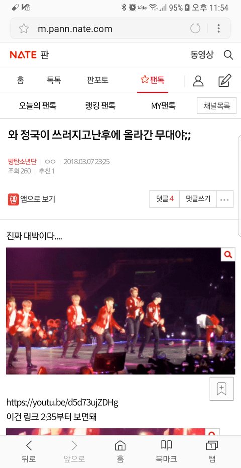 와 정국이 쓰러지고난후에 올라간 무대야;;