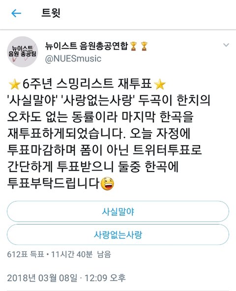 사실말야랑 사랑없는사랑이 동률이라