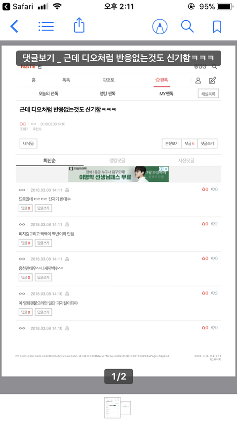 나 지금 추반반응 보고있는데 재밌음