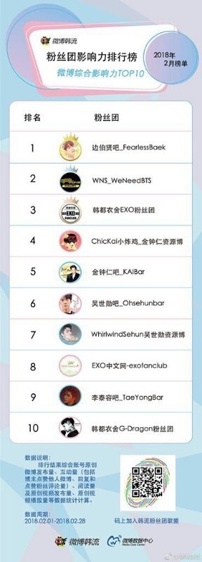 백현바 1위했네~!웨이보 한류팬덤 영향력 첫 순위