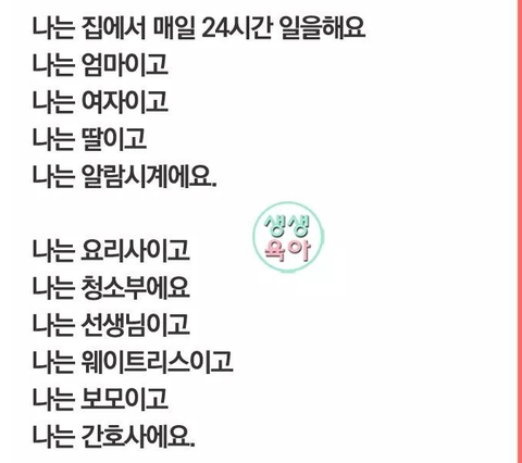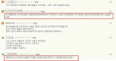 집에서 쉴려고 결혼하는 여자 천지인 주제에 무슨 집안일 하면서 애새끼들 어린이집에 처맡기고 남편이 벌어다주는 본으로 브런치 처먹으러다니면서