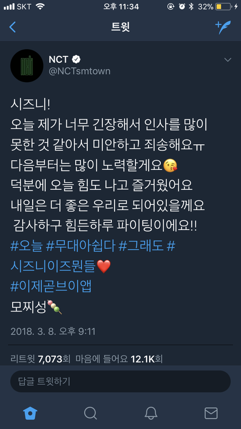 ㅠㅠ 지성아 귀여운 지성이... 엔시티는 다 팬잘알이네 이제 보니까 말 진짜진짜 예쁘게 한다 미안하고 죄송해하지마 지성아... 모찌성이즈뭔들
