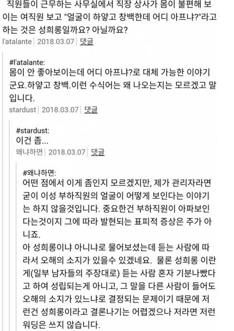 부하 여직원한테 얼굴이 창백하다하면 성희롱