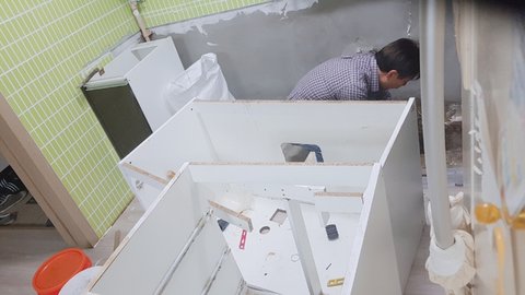 현재 우리집 상황은 매번 공사로 인해 다 망가진 싱크대, 부엌장판 등 저번공사로인해서 들려있고, 욕실벽타일도 금이 간 상태임