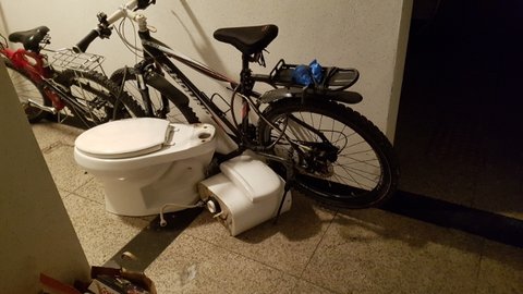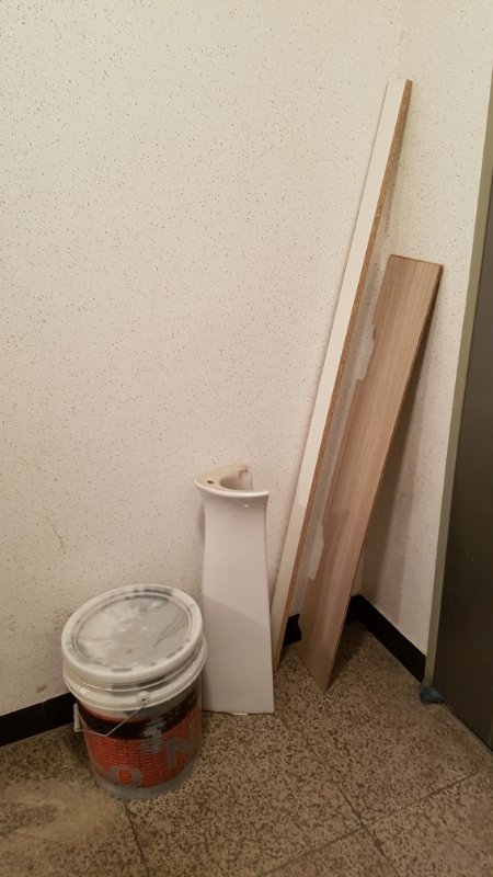 아래사진은 싱크대 상한부분 상태와, 현재 화장실, 화장실에 있던 변기와 그외 자제들을 밖에 두어져있는 상태임.