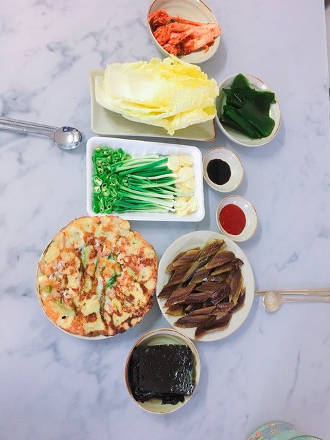 포항에서 과메기 주문해서 파전해가지구 같이 먹었어요.. 너무 맛있음