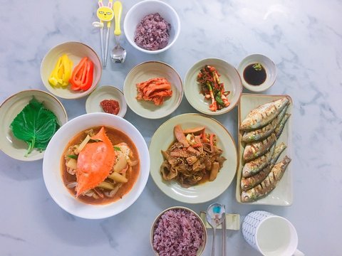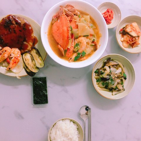 함박스테이크 가지구이 꽃게탕 꽃게를 많이사서 ㅋㅋㅋ
