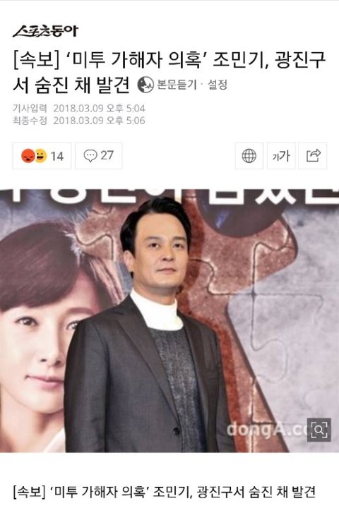 미투가 사람을 죽였다!!!!! 미투폭로자들아 니들은 조민기 가족한테 눈물로 사죄해라!!!!