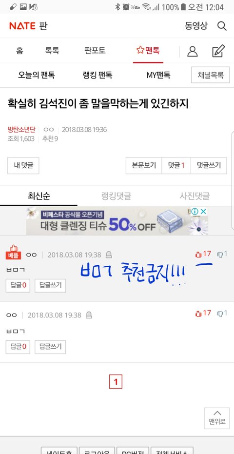 @@@ 투표 마감날까지 떡밥성 글, ㅇㄱㄹ성 글에는 ㅂㅁㄱ 하나만 달고 추천하지 말것!!! 이삐들 믿는다 ㅠ ㅠ @@@