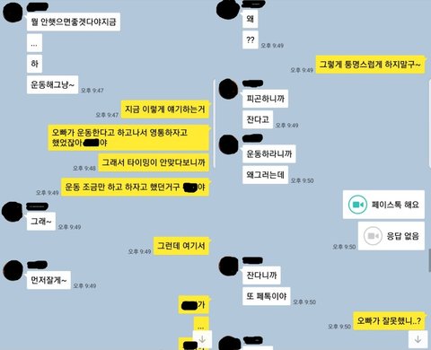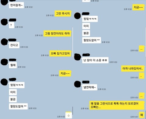 다 보셨다면 조언좀 해주시면 감사하겠습니다. 누구의 잘잘못을 따지는게 아니라 어떻게하면 대화를 하는데 있어서 더 좋은 방법이 있을지 아니면 혹시라도 제가 대화를 하는데 있어서 조금 잘못된 부분이 있다면 따끔한 조언 부탁드립니다^^