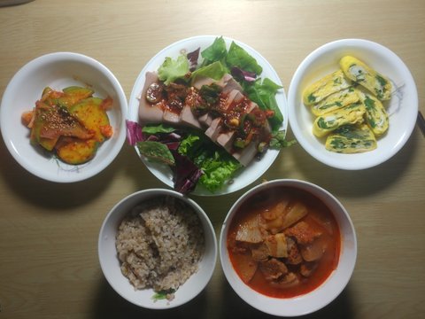 잠시 백수로 지내는 요즘 혼자 먹는 점심 올려봅니다(그릇 겹침 주의!)