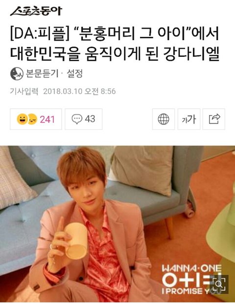 기사)“분홍머리 그 아이”에서 대한민국을 움직이게 된 강다니엘