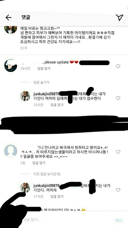 김태희 인스타 댓글 수준 한남 꺼져^^