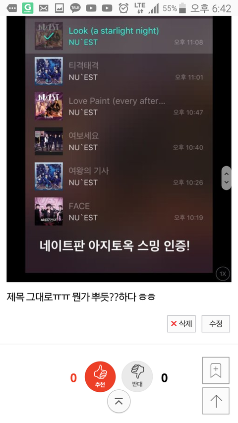 됐니 우리 워딩 안할게~~~ 너네들 진짜 팬덤 썩었거든? 정신좀 차려 ++ 그리고 나도 탈덕 전에는 맨날 쉴드 치고 다녔거든? 그게 너무 힘들어서 탈덕했는데 팬덤 고인거 맞고 어그로도 많아 그니깐 제발 개선 좀 하렴 좀 안타까워서 그래