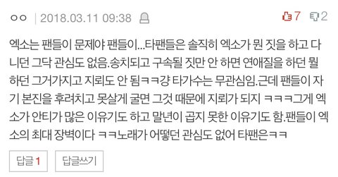 엑소 까는 댓이면 추천 바로 박히고 칭찬하면 반대 박힘 지금 이런 상태임 내려 달라고 하면 안되냐 ㄹㅇ 보기 싫음 댓글들