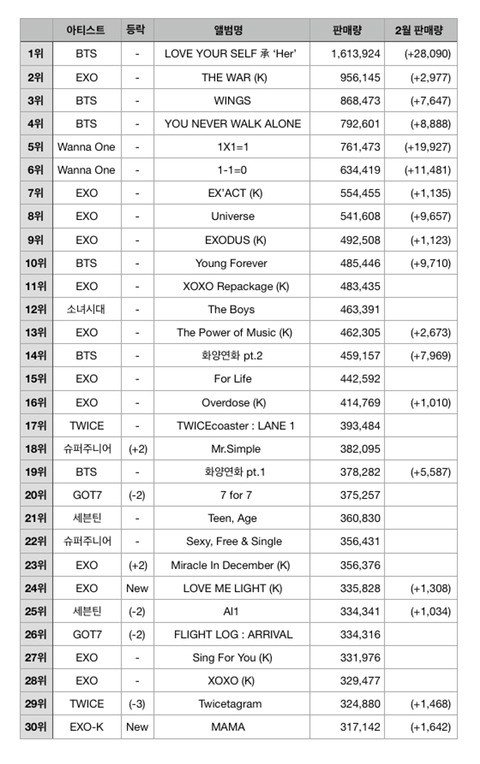 2017 개온 종합 순위 (+역대 음반 판매량)