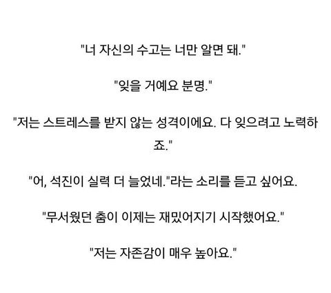 근래 내가 힘든 시기를 겪으며 우연히 들은 봄날은 죽을때까지 나의 노래이며, 얼굴 믿고 설친다 생각했던 진과 뷔. 허세라고 생각했던 윤기는 나의 멘토임.