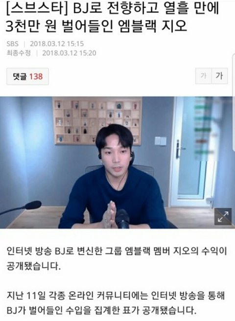 엠블랙 지오 가수 그만두고 BJ로 전향함