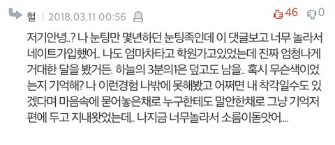 어젠가 톡선에 있었던 다시는 못할 경험 쓰고가라는 글에 덧글이랑 답글인데 ㄹㅇ소름돋는다 한두명도 아니고 여러명이 똑같이 저렇게 이상한 거 본게 ㅠㅠ 판에서 본 글 중 역대급인듯 신기하기도하고
