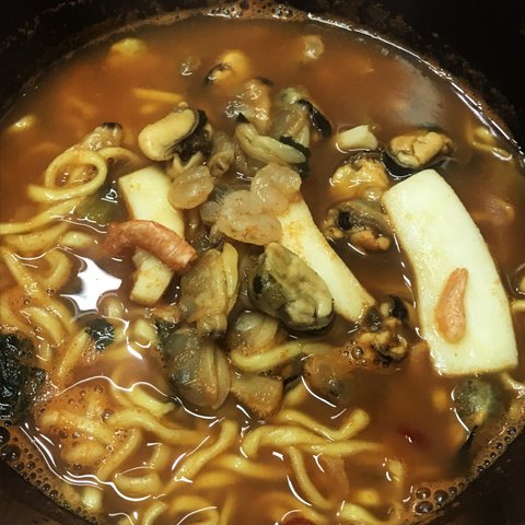 냉동실에 있던 온갓 해물을 다 넣었는지..