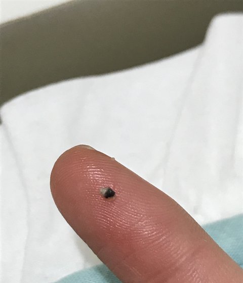 어느날 엄마가 보니까 까만색으로 뭐 박힌거처럼 되있어서 바늘로 뽑을려해도 안뽑혔거든