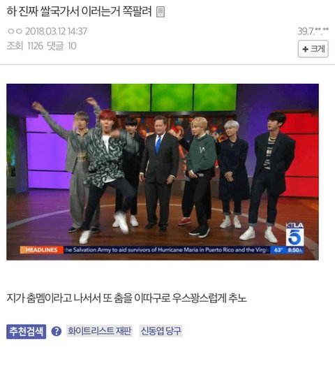 타커뮤 하나랑 방탄갤러리도 난리났었음 거의 1주일을 거품물던데