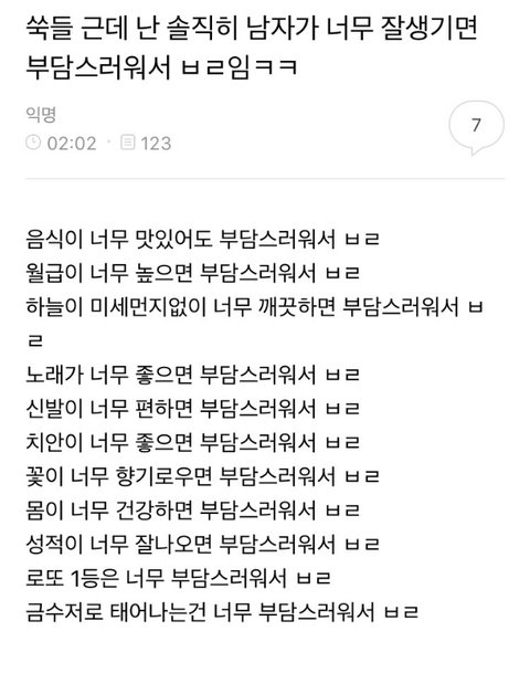 남자가 너무 잘생기면 부담스러워서 ㅂㄹ임ㅋㅋ