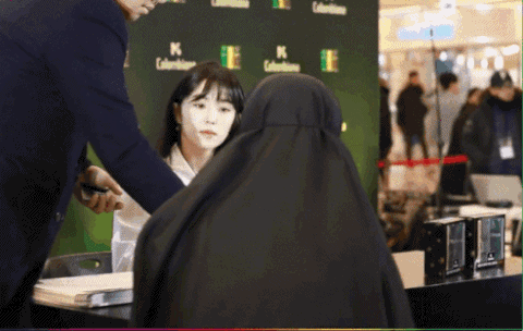 검은천이 등장하자마자 흠칫 놀라는 아이린