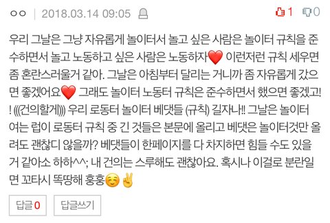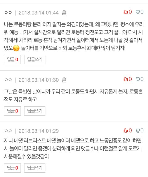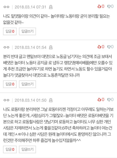 의견받아본 결과 로동터와 분리는 하지 않고 로동댓을 남기며 놀이터를 즐기면 될것같아