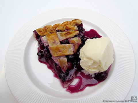 바삭바삭한 파이 껍질과, 달콤하면서도 레몬과 시나몬의 풍미가 느껴지는 블루베리 필링과, 차가운 아이스크림이 섞이면서 시너지 효과를 불러일으킵니다.