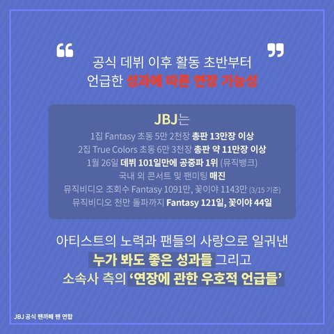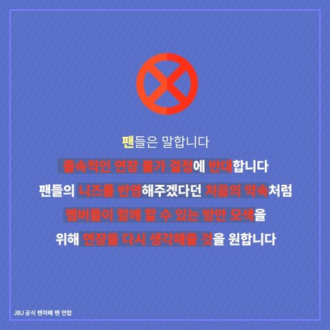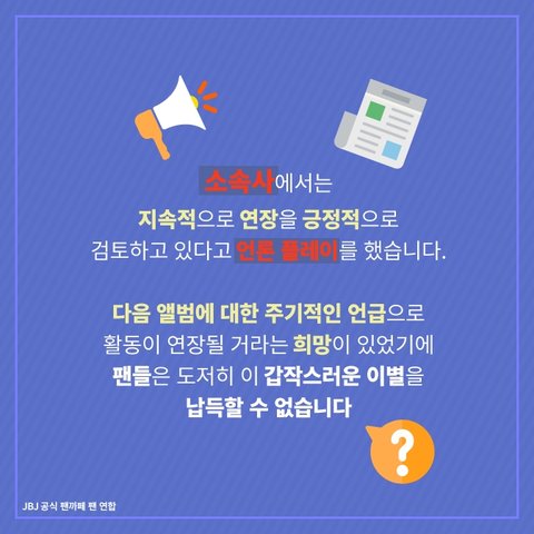 이제까지 JBJ는 멤버들, 조이풀(팬덤명)과 cj 페이브가 이끌고 왔는데 이제와서 아무것도 안한 소속사들이 계약연장 엎어버린거..