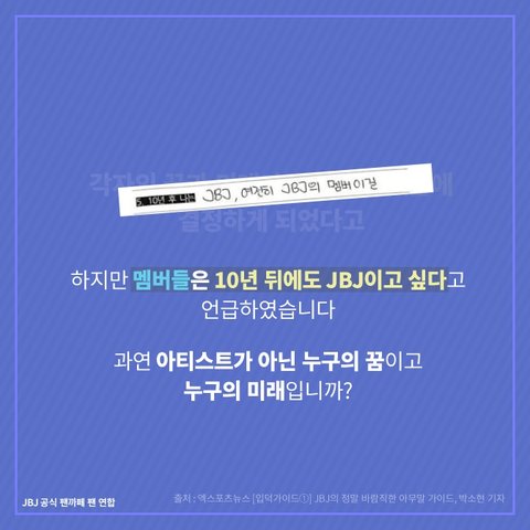 위에 있는 몇몇 소속사들의 만행으로 JBJ 꿈이 사라지고있습니다. 많은 관심 부탁드립니다